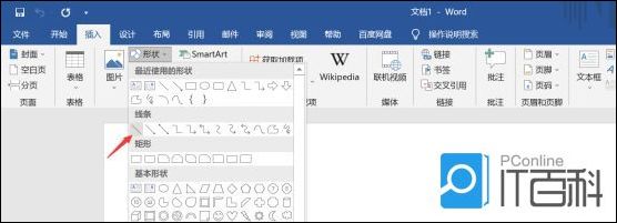 2.然后在“形状”下拉框中选择“线条”中的第一个样式。
