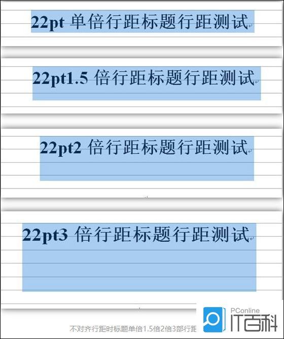 那么,如果没有勾选“如果文档网格已定义,则与网格对齐”呢?下面的图表中,您可以看到在设置单行、1.5行、2行和3行时,会发生相应的变化,此时不会再以12pt主体的最小行为基准,而会以22pt主体的最小行为基准.