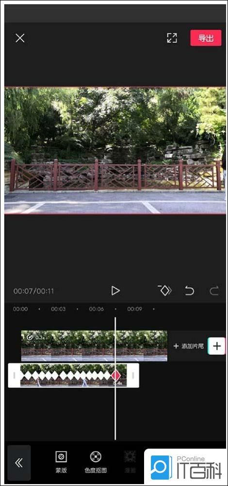 11点击√按钮返回,拖曳时间轴,点击「蒙版」按钮。