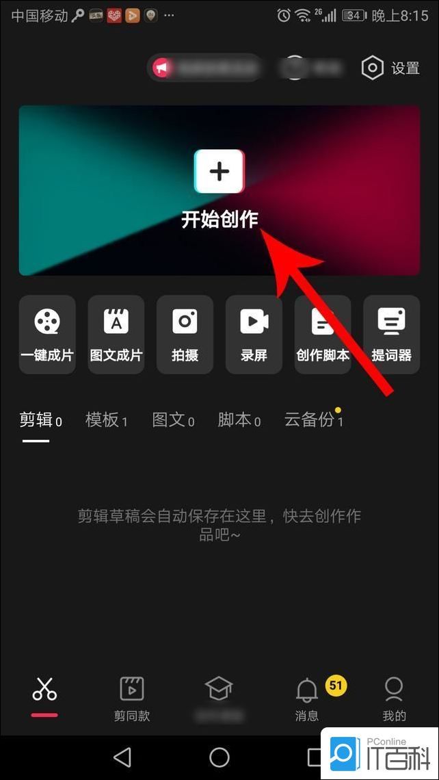 1、打开手机点击“剪映”,然后点击“开始创作”。