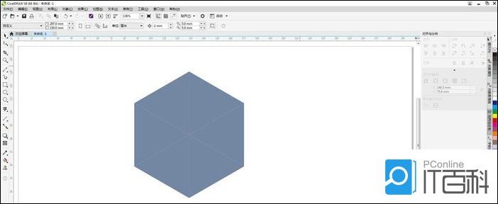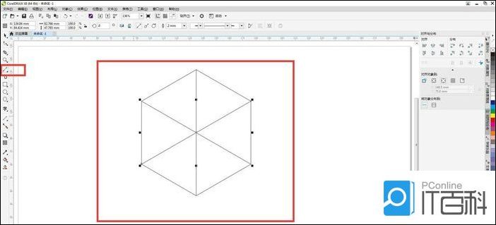 打开cdr软件,新建文档,绘制一个六边形图形。