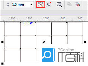 5、将表格进行合并。“挑选工具”将至少两个对象选择,在属性栏选择“合并”按钮或单击菜单“对象→造型→造型”,在弹出的造型泊坞窗中选择“焊接”命令,其功能可以将几个图形对象结合成一个图形对象,即可实现“单元格的合并”。