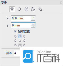 首先绘制一个矩形,利用“对象→变换→位置”通过“相对位置”的设定以及“副本”再制功能,快速完成表格的制作。
