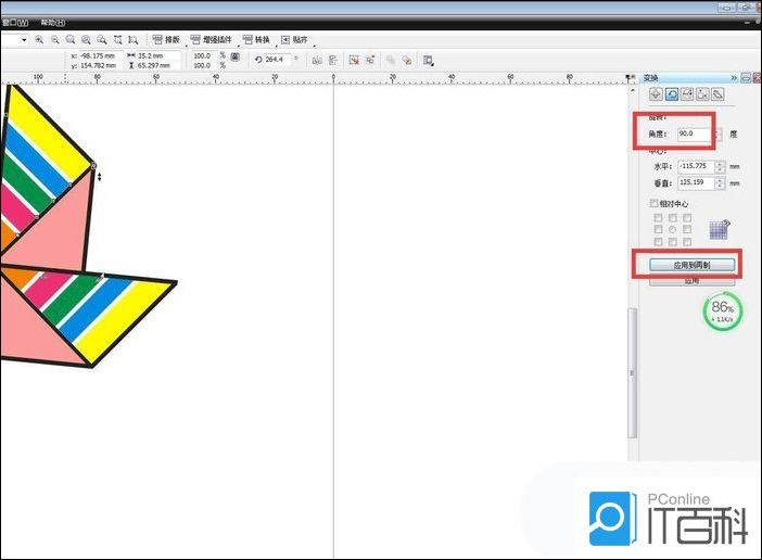 输入旋转角度为90度,然后点击应用到再制,围一圈。