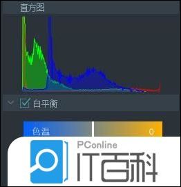 在高级调色工具窗口中选择“白平衡”选项,在下拉菜单中,你会看到控制色温和色调的调节器。拽动调节器上的滑块,负值为应用冷色调,正值为应用暖色调。