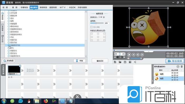 4、确定之后, 将贴图导入视频预览区域 ,我们可以进行文字的基本属性的修改: 位置关系、大小、透明度以及持续时间