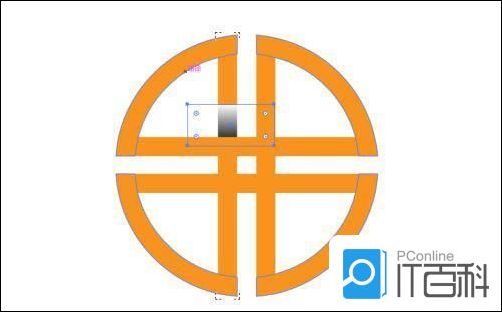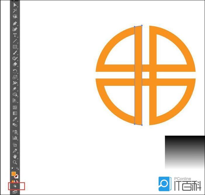 全选,选择左侧工具栏“形状生成器工具”,按住alt键,将不需要的部分划掉,填充为橘黄色