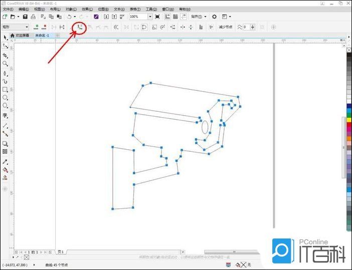 3、选中多边图案,点击【形状工具】,选中图案上的所有点,点击【转换为曲线】将图案转曲后,按图示调整控制点,完成整个监控摄像头轮廓图案的绘制(如图所示);