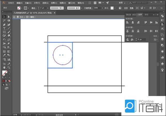 步骤 04椭圆工具创建一个120*120px的圆1,同时选中矩形2与圆1,再次单击一次矩形2,在对齐窗口选择水平右对齐与垂直居中对齐。