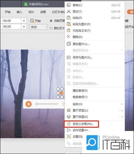 5、播放幻灯片时,插入的音乐只会在插入音乐的这一张幻灯片播放,下一张幻灯片就没有音乐了。如何自由设置幻灯片中音乐的播放呢,也就是说让音乐一直播放下去,知道需要的时候停止!可以在音量图标上右击鼠标,选择自定义动画。