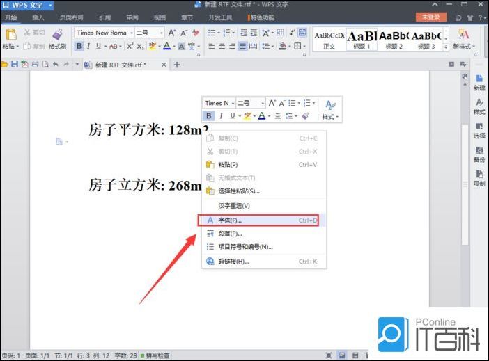 步骤1:打开WPS软件,点击“新建”,在文本中点击“新建空白”,在空白文档中输入“房子平方米: 128m2”,房子立方米: 268m3,效果如下: