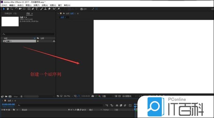 1、新建一个After Effects项目,然后在这个新建的空白项目中执行创建合成操作,来创建一个合成1.
