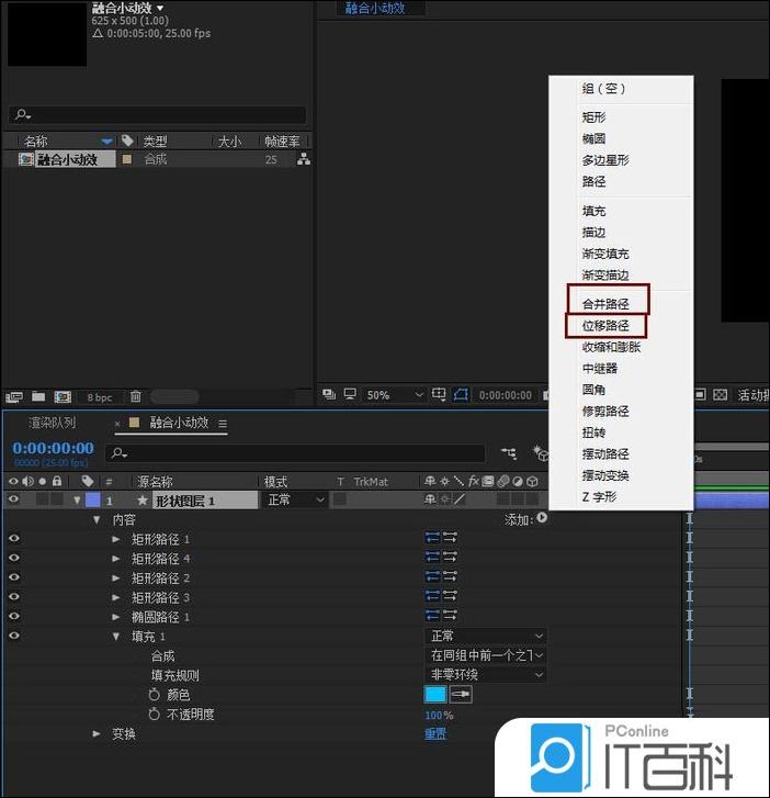 4、添加合并路径和位移路径, 默认合并效果为相加 ,边看效果,边调整位移路径。
