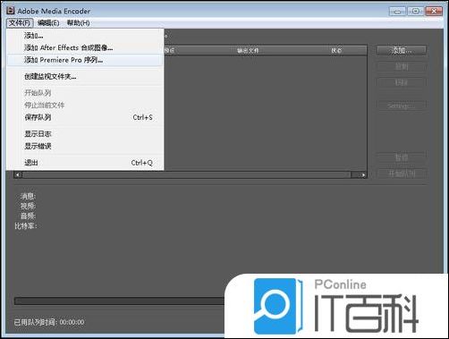 4、现在打开添加,添加你的工程文件,如图所示。ae cs4的文件也可以从这里导入,pr的序列文件后缀为.prproj