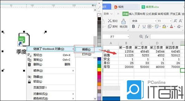 五、在画板中就能看到图标了,右键点击【链接对象】-【编辑】就能查看该文件内容