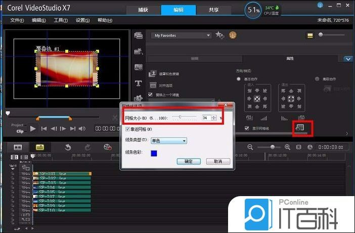 5、接着点击第一个覆叠轨的图片素材,然后在右上的区域会显示设置素材的一些参数,其中有一个 显示 网格线 的选项 ,将其前面打上勾,同时在视频预览窗口就会显示网格线。