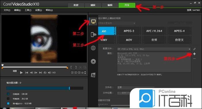 1、请按照图中的步骤,进行先后顺序的操作,强调一下,需要 选择 avi格式 的,第四步,选择 加号,