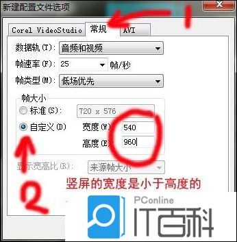 3、由于是竖屏的,所以分辨率的设置, 宽度要低于高度 ,