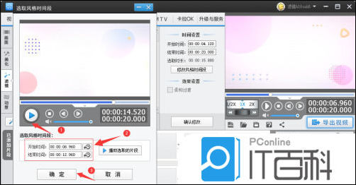 4、点击 播放按钮 ,选取开始和结束时间,点击确定,如图所示。