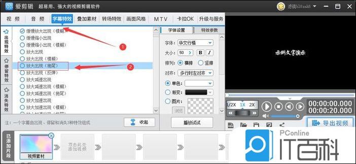 爱剪辑视频字幕制作拖尾放大出现特效方法【教程】