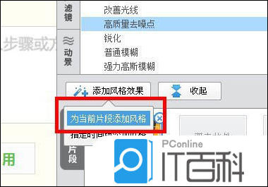 4、选择“ 为当前片段添加风格”