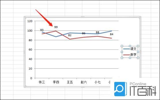 5.可看到数字在折线图的上方显示了,如下图所示: