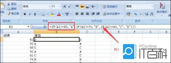 那么省下的情况就是小于60了,评级为“D”所以表达式最终为IF(A2>=80,A,IF(A2>=70,B,IF(A2>=60,C,D)))。