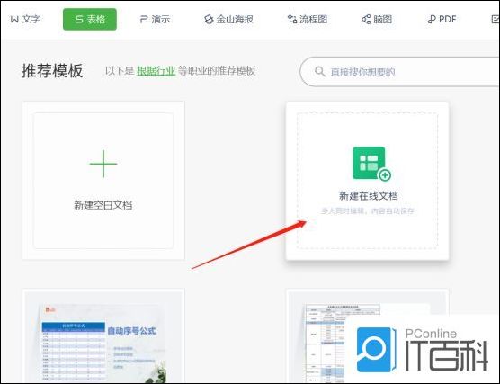 打开在线表格,这里可以根据自己的需求来选择相应的模板,这里我们选择空白表格文档选项。