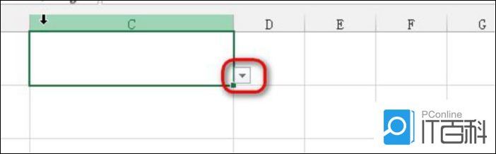 3.当点击下拉箭头时会发现弹出了一个内容列表,此时明白了,C1单元格被限定了只能输入列表中的内容。如图所示。