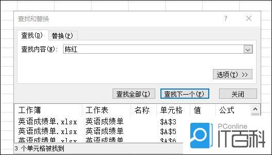 然后在查找内容栏输入”陈红“,然后点击”查找全部“