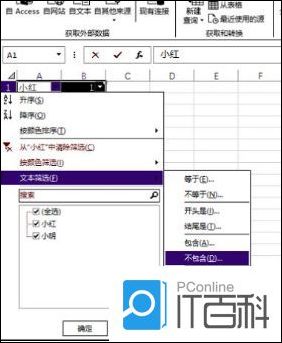 4.可以看到中间有个文本筛选,选择你想要的筛选方式,比如选择不包含筛选项,如图所示。