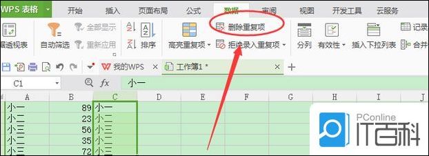 6、点击上边栏中“数据”下方的“删除重复项”。