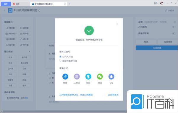 成功创建表单后,使用下方的几种邀请方式发送表单即可进行信息收集。