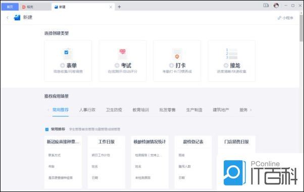 选择创建的表单类型,或在模板库中选择需要使用的表单。