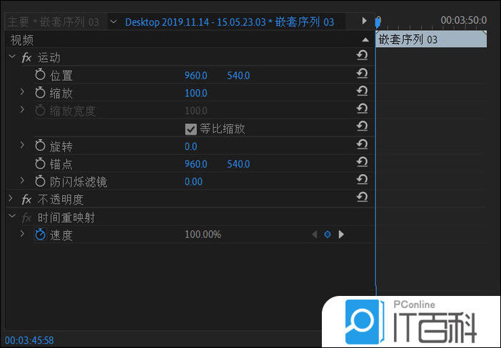5、然后点击这个刚嵌套玩的这个素材,在左上方效果控件面板中,我们可以找到不透明度,我们打开 不透明度