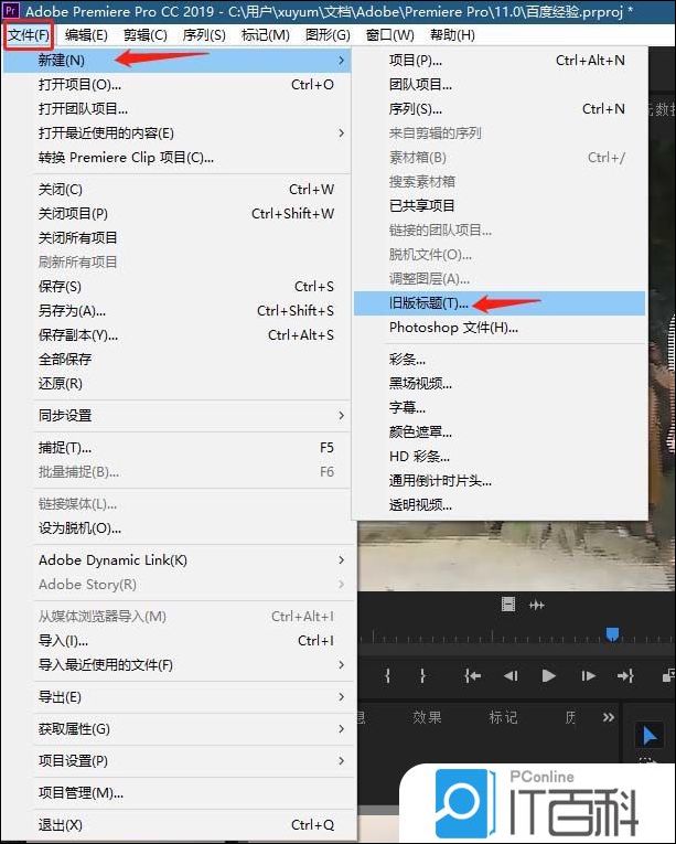 4、点击顶部菜单栏的“ 文件”-“新建”-”旧版标题 “,如图