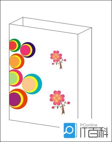 第四步:也可以用复制的方法给后面这个斜面加上同样图案,也可同样置入容器中,给两个侧面也用同样的方法加上图案,输入时尚购物袋文字,倾斜一点,放置侧面