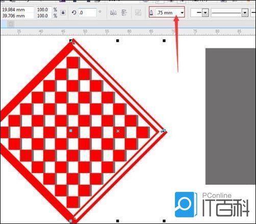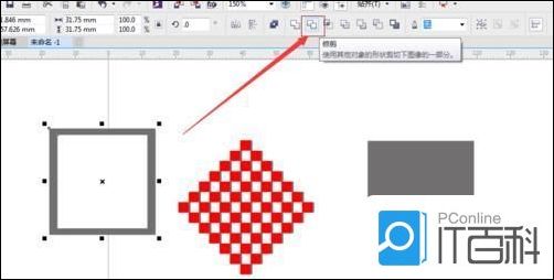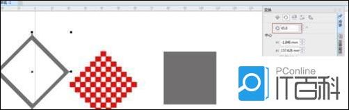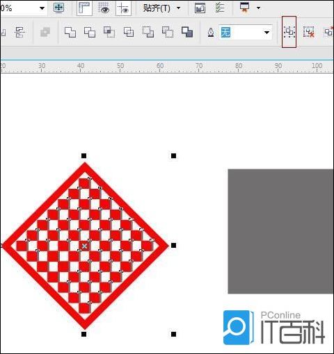 6、绘制一个正方形,将矩形填充步骤5的70%的灰色。复制一份,备份。将其中一个,选中复制(按住shift键点右键)缩小,填充白色。框选两个,将其修剪。将里面那个删除,就出现边框的效果了。按alt+F8旋转-->旋转45°-->运用