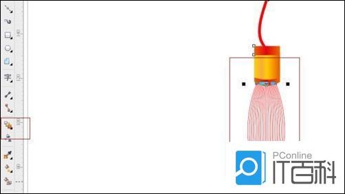 7、对图形编组。将框框放在图形上。调整框和图形,直到得到想要的效果。做好后点群组。用贝塞尔工具,绘制一个线,填充白色轮廓,改变线条大小,根据需要设置。用交互式透明工具设置一点透明。效果如图。