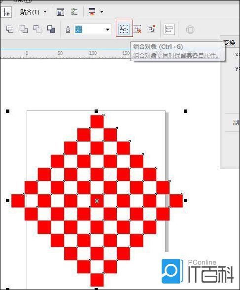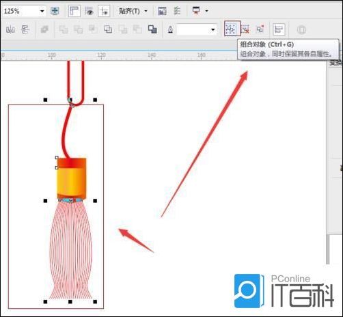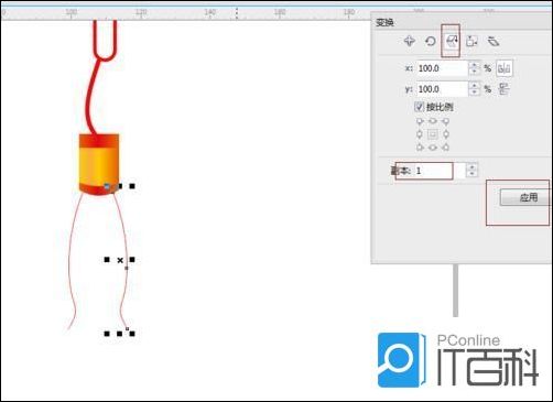 16、将所有图形编组。复制一个,镜像。将他们缩小一点。将中国结全部选中,进行编组。