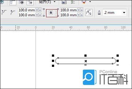 8、绘制一个矩形,设置圆角为100,属性栏里,将锁锁定。按住shift,复制一个,缩小,样式如图。并将两个图形进行修剪。修剪以后将里面的图形删除。填充颜色,描边为无。在[变换]里修改角度45度,然后复制一个,按ctrl+d复制一个,然后将三个框选。一起复制,在【变换】选择镜像-->副本:1-->应用。