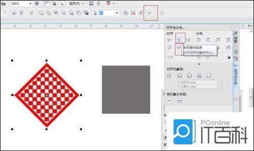 11、框选两个图形,选择对其与分布,居中对齐。拖动中间的图案,让其适合。然后群组。