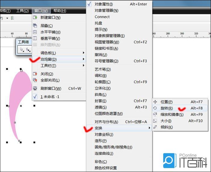 5、接着“窗口”→“泊坞窗”→“旋转”。