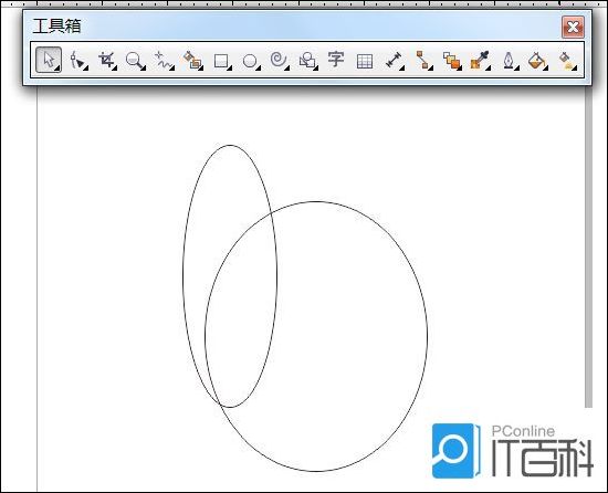 2、绘制好了后,继续通过挑选工具绘制第二个椭圆形,通过控制放大变形后,与第一个椭圆组合在一起。