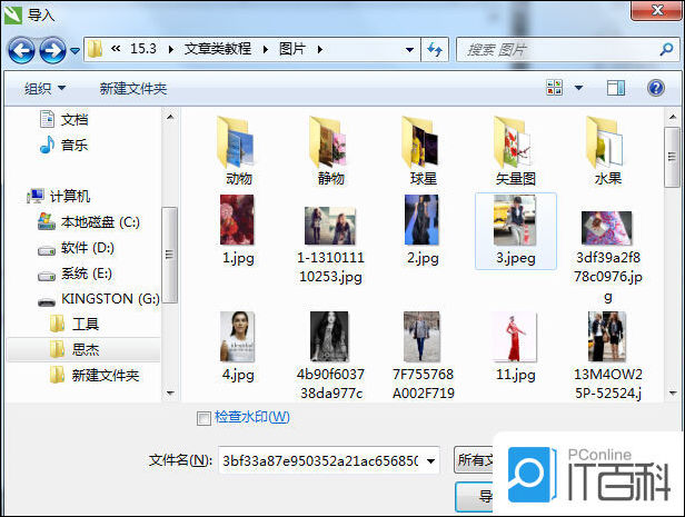 。弹出“导入”对话框,若要选择多个图像,可按住Ctrl键的同时单击图像文件,如图所示。