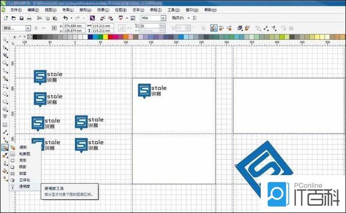 5、选择一个LOGO,放大并旋转,