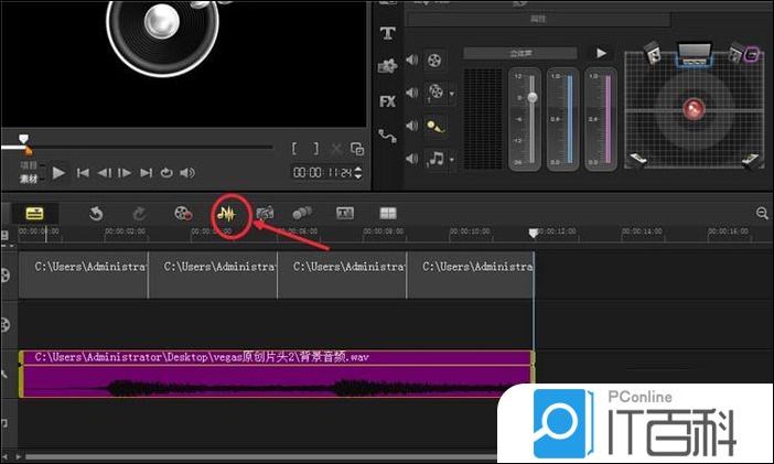 5、随后我们就可以看到,音频轨上出现了音波,还有一条横线,通过调节横线的高低,我们就可以控制各个时间音乐的音量大小了