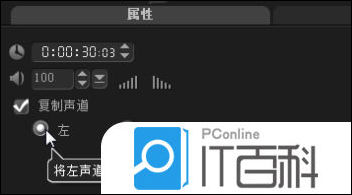 三、选择“复制声道”复选框,然后单击“左”单选按钮。