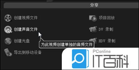 四、单击“分享”按钮,进入“分享”步骤,单击“创建声音文件”按钮输出音频文件。