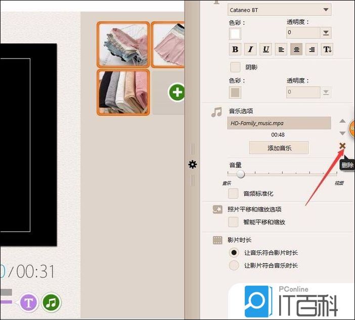 8、然后就可以设置文字的大小颜色等了,音乐也可以设置,不喜欢可以按” X" 删除掉再添加新的。